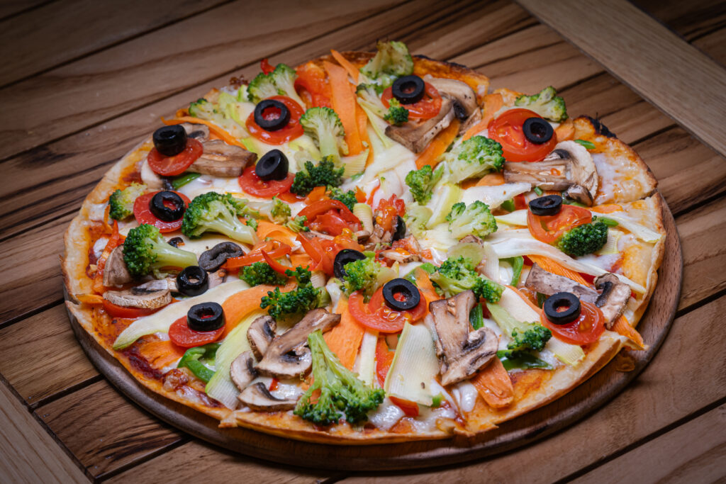 Vejeteryan Pizza İçindekiler:(Mozarella Peyniri, Çeri Domates, Mantar, Renkli Biberler, Kabak, Havuç, Brokoli) Fiyat:270 ₺